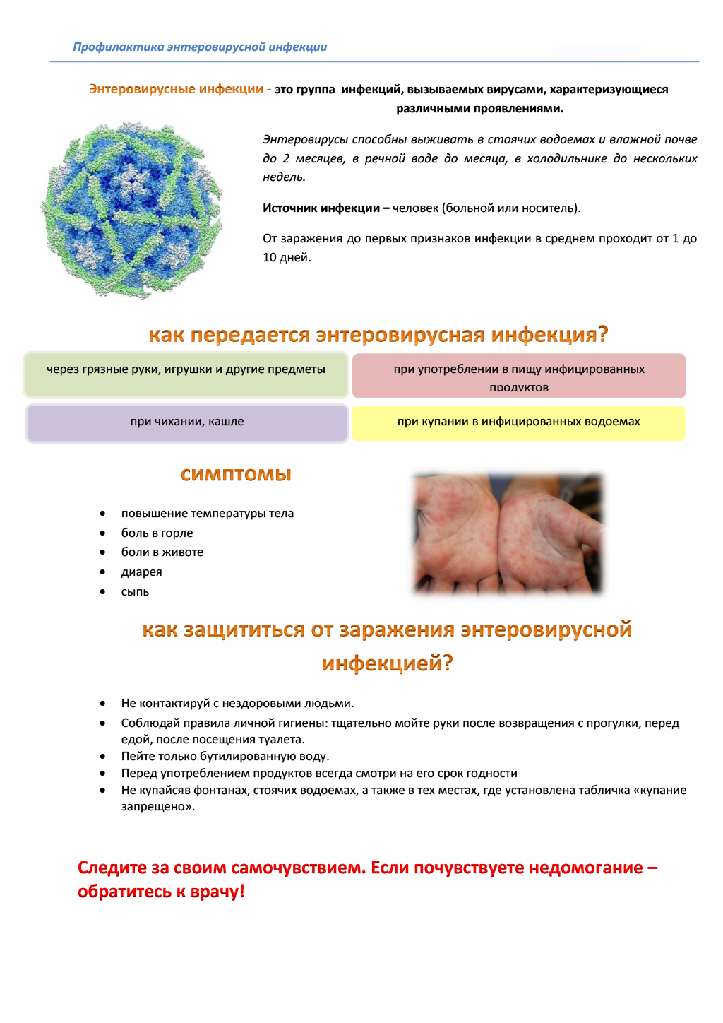 Памятка школьнику: «Профилактика энтеровирусной инфекции»